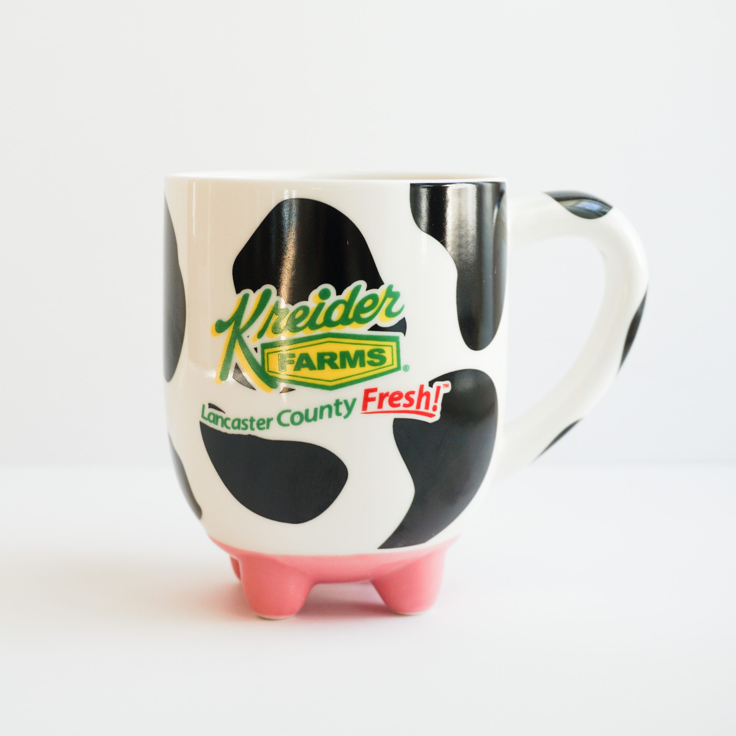 16oz ceramic cow print mug w/ KF logo.