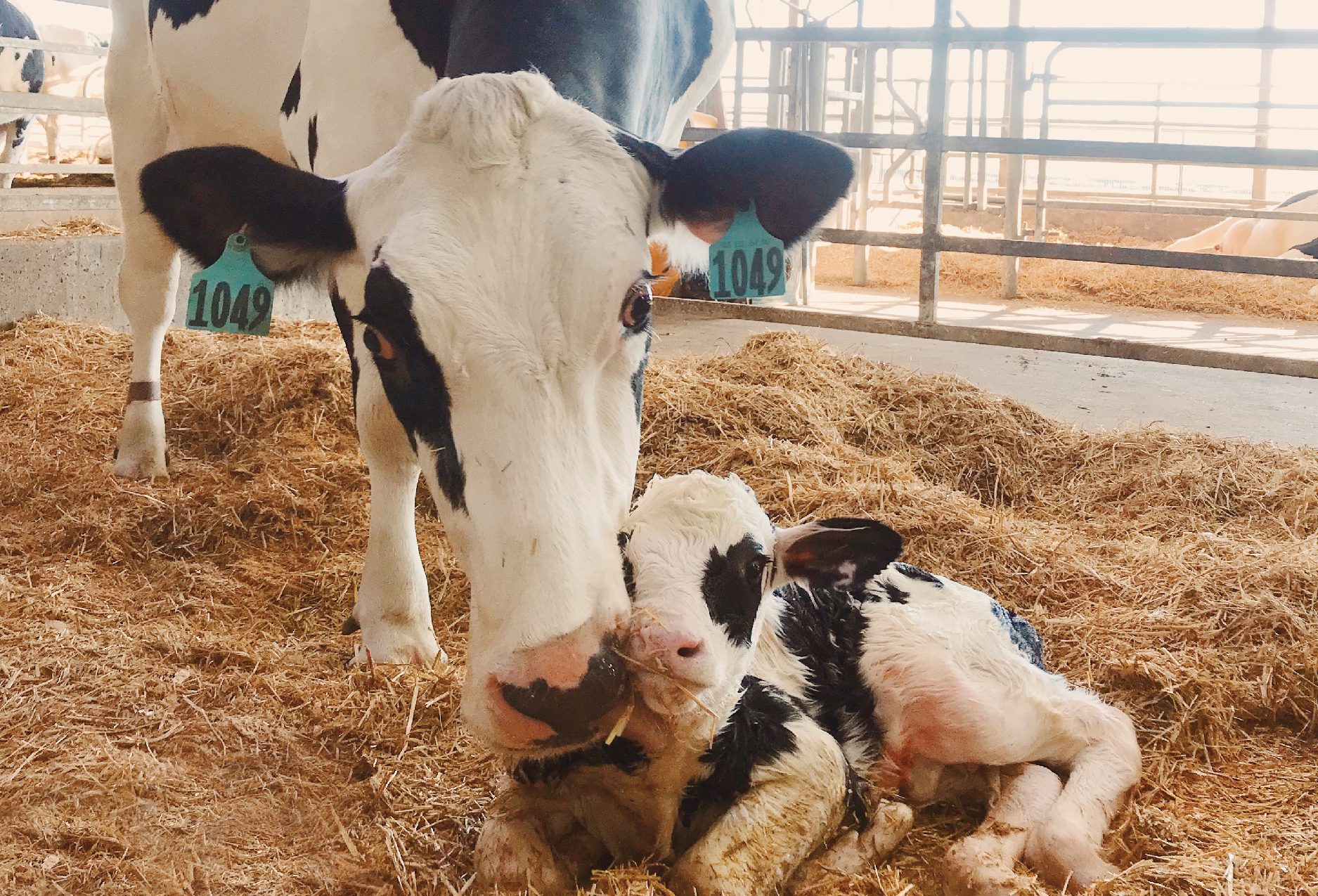 Postcard featuring Mama cow and her newborn calf.